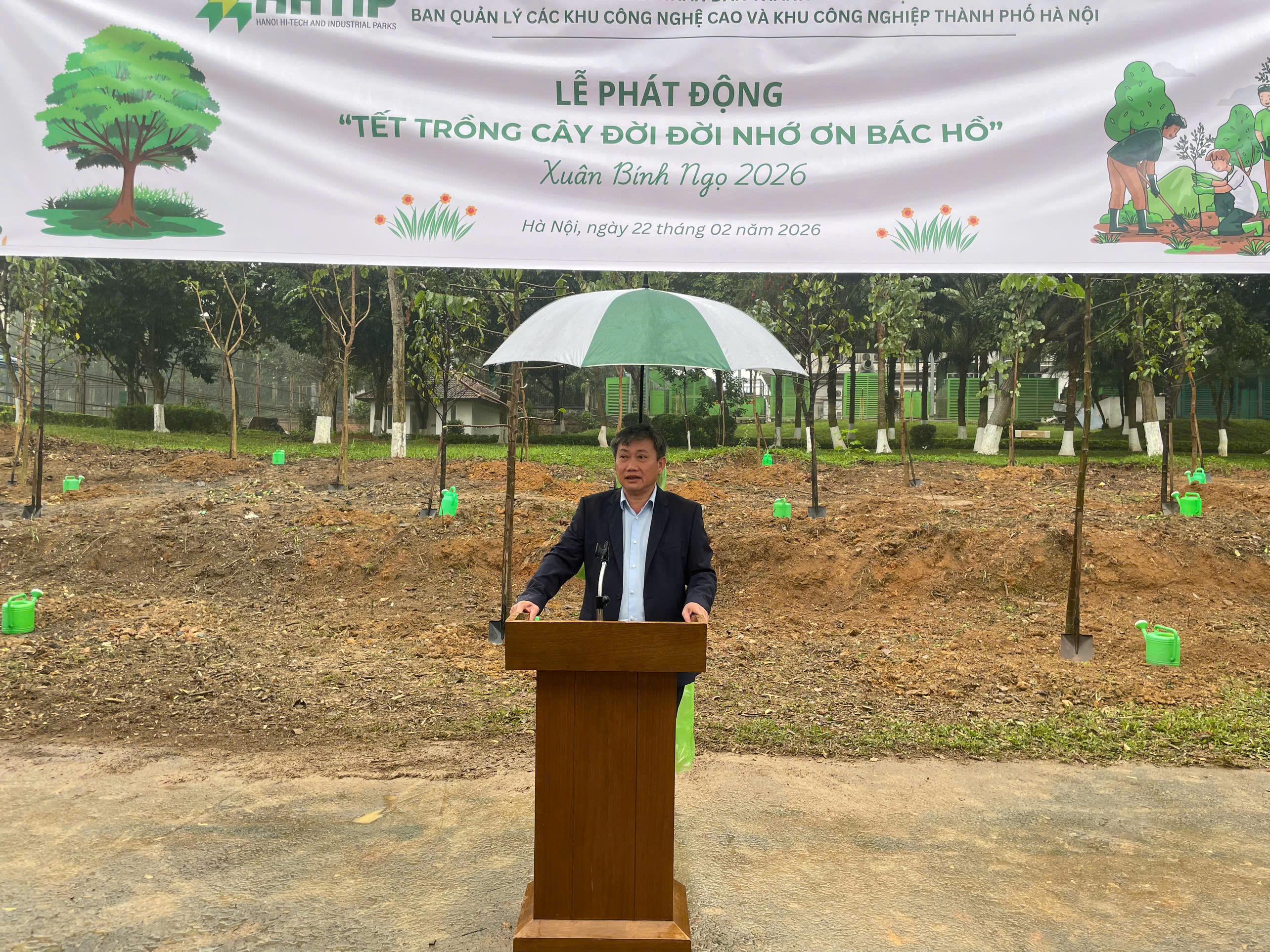Sáng ngày 26-2-2026 (tức mùng 6 tháng Giêng năm Bính Ngọ), tại Khu Công nghệ cao (CNC) Hòa Lạc, Ban Quản lý các Khu công nghệ cao và Khu công nghiệp thành phố Hà Nội đã tổ chức Lễ phát động “Tết trồng cây đời đời nhớ ơn Bác Hồ”. Đây là hoạt động thiết thực nhằm hưởng ứng Kế hoạch số 380/KH-UBND của UBND thành phố Hà Nội và lan tỏa thông điệp phát triển bền vững trong cộng đồng doanh nghiệp Thủ đô.